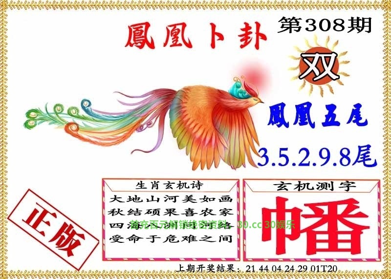 | 309期:五肖 | 兔狗猪龙鸡 | 开:發00 |